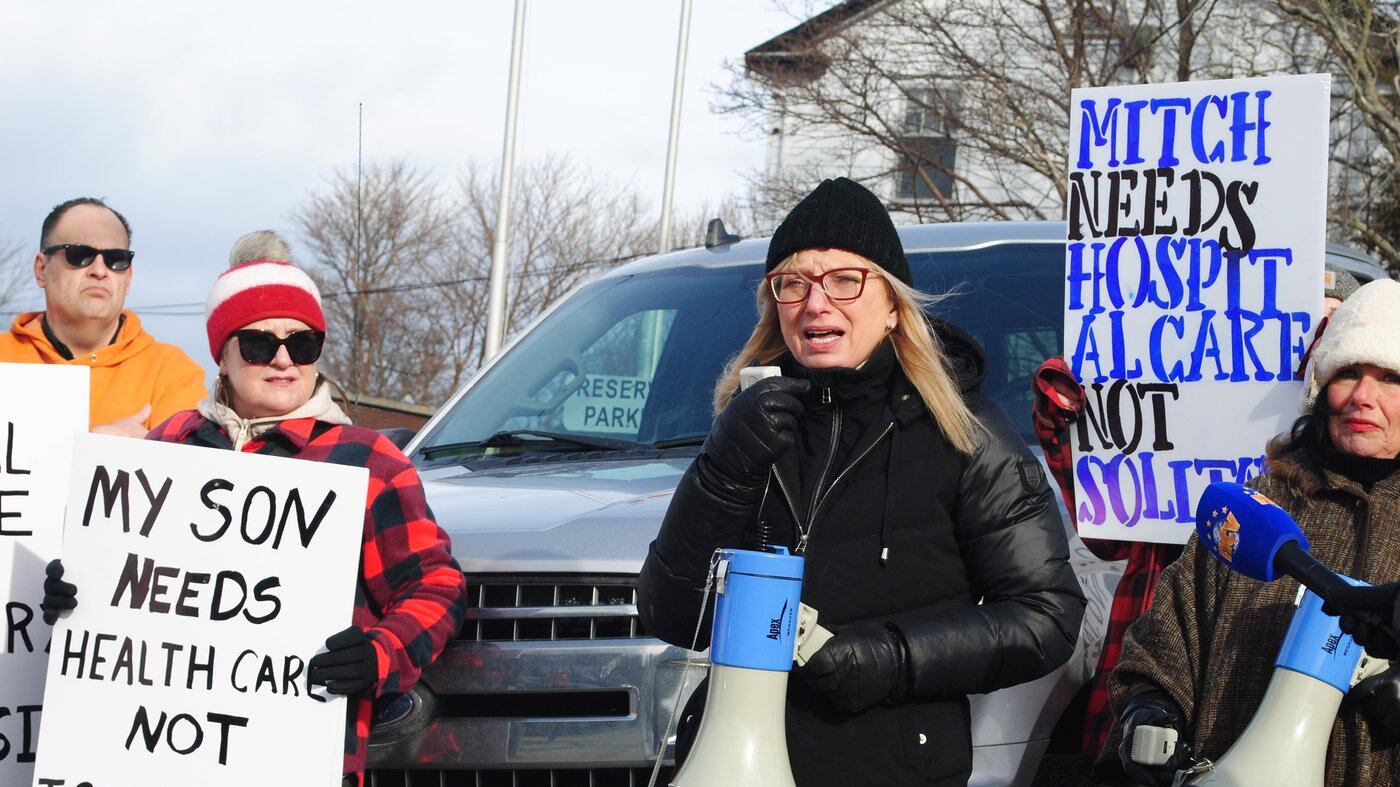 Beverley Murphy speaks to a crowd of protesters at Her Majesty's Penitentiary in St. John's on Wednesday. She says her son, an inmate at the jail, is mentally unwell and she's fighting for him to be hospitalized. THE CANADIAN PRESSSarah Smellie