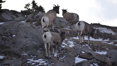 Bighorn sheep in Jasper National Park on March 5, 2026. (Dave Mitchell/CTV News Edmonton)