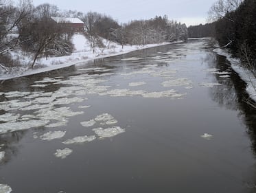 winter weather Saugeen River maple hill bridge hanover generic water Saugeen River at the Maple Hill bridge, west of Hanover on Jan. 15, 2026. (Courtesy: Cindy Steadman)