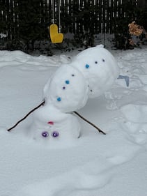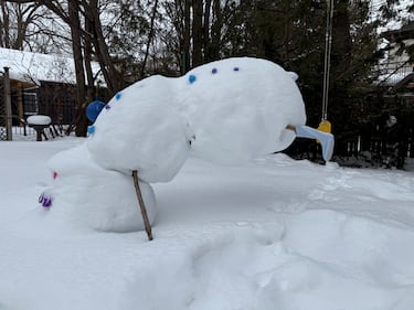 new dundee snow snowman melt winter A snowman in New Dundee melts due to the rising temperatures on Jan. 9, 2026. (Courtesy: Jim Corbett)