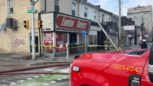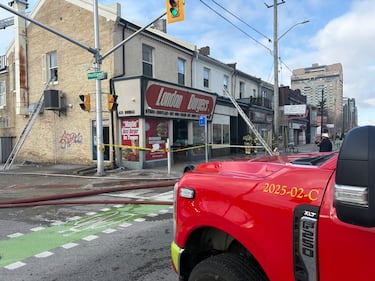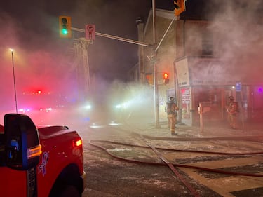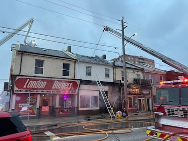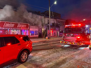 Dundas and Maitland fire - London - March 2026 Emergency crews respond to a fire in the area of Dundas and Maitland streets in London, Ont. on March 28, 2026. (Brent Lale/CTV News London)