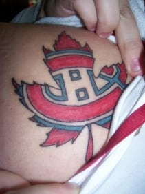 Montreal Canadiens "One big Habs fan for over 30 years. What started as a way to impress someone turned into a lifelong love for a team with an enriched history and an undeniable passion for the game," says Celine Cybill Peron. "The sound of skates on the ice is my favourite sound. What better way to honour such an amazing team then to carry the Bleu, blanc rouge forever inked to my skin. Better than any jersey out there. Go Habs Go!"