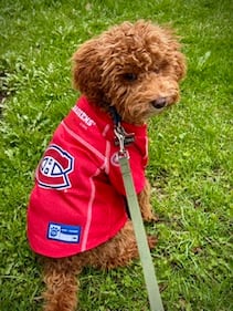 A Habs pup in Mississauga goes outside before puck drop. (photo: Lyne Broszko)