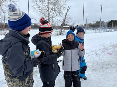 Students from École St-Augustin in Greater Sudbury, Ont., formed a human chain to deliver 720 or more food items to the Garson Food Bank, addressing a 30 per cent spike in demand while learning vital lessons in community giving.