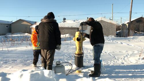 thawing a frozen fire hydrant Members of the Kashechewan First Nation community thawing a frozen fire hydrant with a propane torch, then adding salt into the unit on Jan. 15. 2026. (Lydia Chubak/CTV News Northern Ontario)