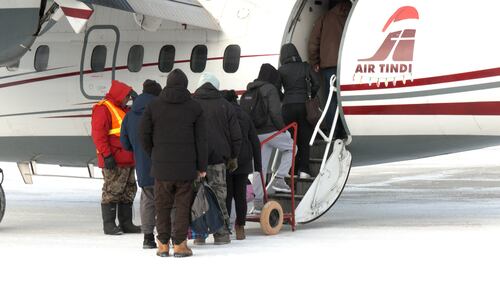 Kashechewan First Nation - evac Members of Kashechewan First Nation board an evcationation on Jan. 15, 2026, amid the community's ongoing water crisis. (Lydia Chubak/CTV News Northern Ontario)