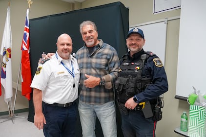 A not angry Lou Ferrigno visits with Timmins police