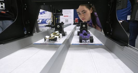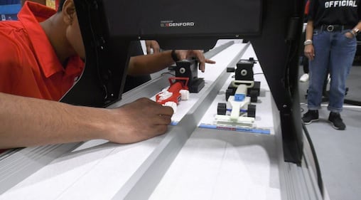 STEM Racing 2026 Canadian National Championships An undated photo of F1 in Schools cars in action. (Supplied/North Bay Tourism)
