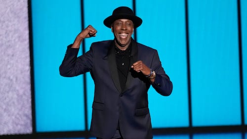 Arsenio Hall presents the award for outstanding writing for a variety series during the 75th Primetime Emmy Awards on Monday, Jan. 15, 2024, at the Peacock Theater in Los Angeles. (AP Photo/Chris Pizzello)