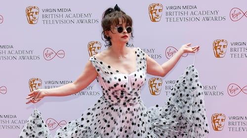 Helena Bonham-Carter poses for photographers upon arrival for the British Academy Television Awards in London, Sunday, June 6, 2021. (AP Photo/Alberto Pezzali)