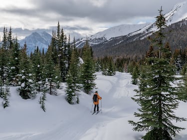 A skier takes in the views during a visit to Skoki Lodge in an image provided by Lake Louise Ski Resort.