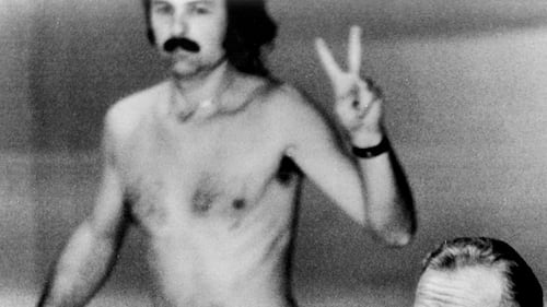 Robert Opel streaks across the stage in front of a television audience of 76 million people. (Getty Images)