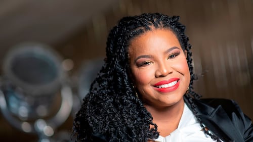Creator of #OscarsSoWhite movement, April Reign, poses for AFP during a photo session in Hollywood on Feb. 1, 2020. (Valerie Macon/AFP via Getty Images)