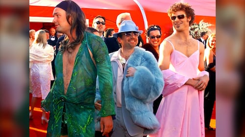 Meanwhile, Matt Stone wore a pink dress resembling the Ralph Lauren Gwyneth Paltrow wore to the Academy Awards in 1999, where she won Best Actress for ‘Shakespeare in Love.’