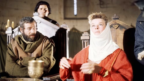Irish actor Peter O'Toole, as King Henry II, and American actress Katharine Hepburn (1907 - 2003) as Queen Eleanor of Aquitaine, in 'The Lion In Winter', directed by Anthony Harvey, 1968. (Silver Screen Collection/Getty Images)