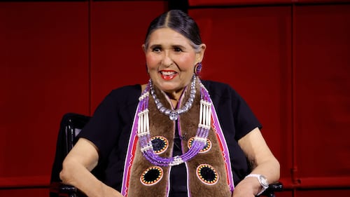 Sacheen Littlefeather (born Marie Louise Cruz) on stage at AMPAS Presents An Evening with Sacheen Littlefeather at Academy Museum of Motion Pictures on Sept. 17, 2022 in Los Angeles, Calif. (Frazer Harrison/Getty Images)