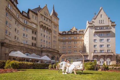 Pictured are the backyard gardens at the Fairmont Hotel MacDonald in Edmonton. The building itself is "a storybook French Renaissance castle standing by the banks of the North Saskatchewan River," Michelin says.