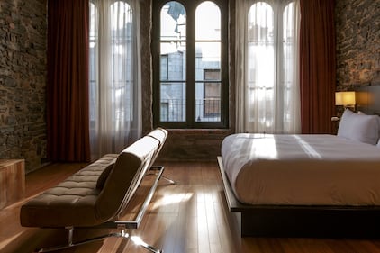 Hotel Le Germain is located in Montreal's downtown business district, just off the busy Ste. Catherine Street, known for its world-class shopping. "Le Germain’s interiors are minimal and fashion-forward," Michelin says, with "the rooms laid out loft-style."