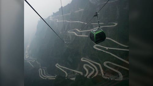 A cable car goes up to the peak of Tianmen Mountain on Dec. 11, 2005 at Zhangjiajie National Park in China's Central Hunan province. (Andrew Wong/Getty Images)