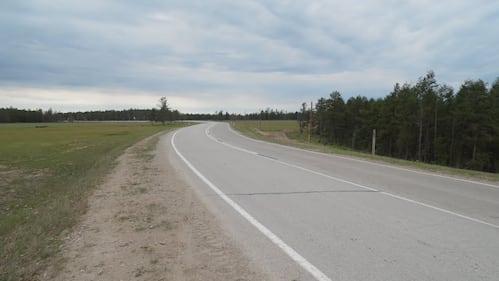 A paved section of Kolyma Highway R504 at Tyungyulyu Village, Jan. 10, 2013. (Svetlana Ivanova/WikiMedia Commons)