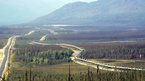 The trans-Alaska pipeline is seen next to the Dalton Highway north of Fairbanks, Alaska, Aug 10, 2005. (AP Photo/Al Grillo)