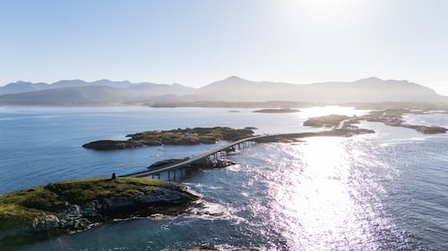 A drone view of the Atlantic Ocean Road in Norway on Sept. 18, 2024. (Manuel Romano/NurPhoto via Getty Images)