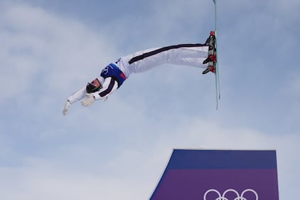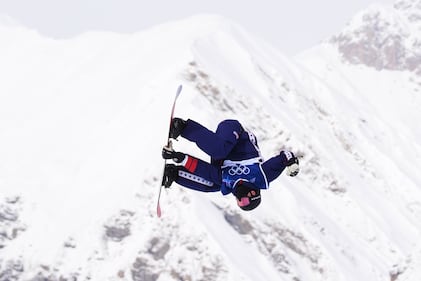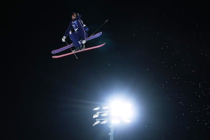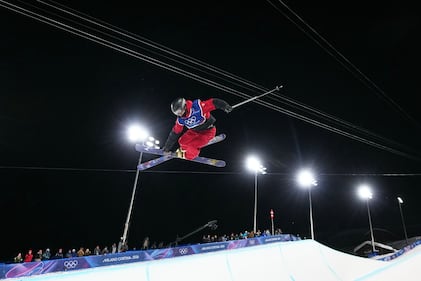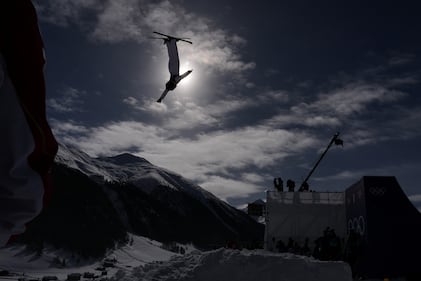 United States' Alex Hall competes during the men's freestyle skiing big air qualifications at the 2026 Winter Olympics, in Livigno, Italy, Sunday, Feb. 15, 2026. (AP Photo/Julia Demaree Nikhinson)