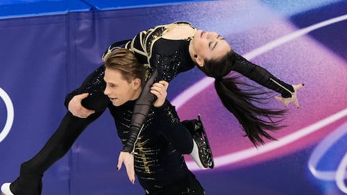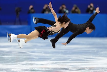 China's Wenjing Sui and Cong Han compete during the pairs short program figure skating event at the 2026 Winter Olympics, in Milan, on Sunday, Feb. 15, 2026. THE CANADIAN PRESS/Darryl Dyck