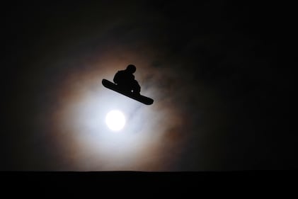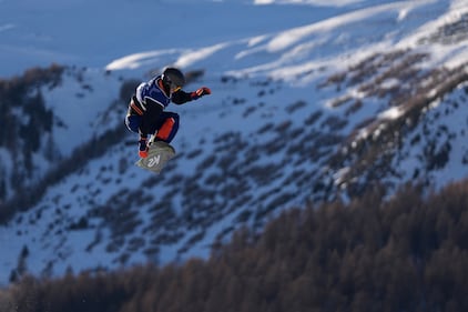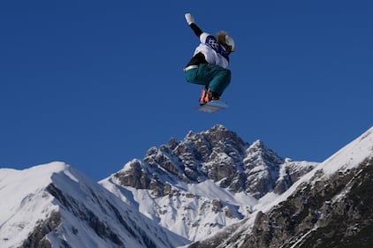 New Zealand's Dane Menzies practices before the men's snowboarding slopestyle finals at the 2026 Winter Olympics, in Livigno, Italy, Wednesday, Feb. 18, 2026. (AP Photo/Lindsey Wasson)