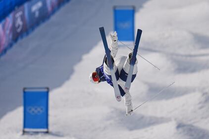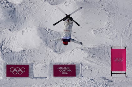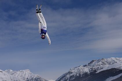 Australia's Sidney Stephens (26) competes during the women's freestyle skiing aerials qualifications at the 2026 Winter Olympics, in Livigno, Italy, Wednesday, Feb. 18, 2026. (AP Photo/Julia Demaree Nikhinson)