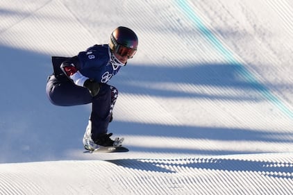 Britain's Huw Nightingale competes during the men's snowboard cross qualifications at the 2026 Winter Olympics, in Livigno, Italy, Thursday, Feb. 12, 2026. (AP Photo/Lindsey Wasson)