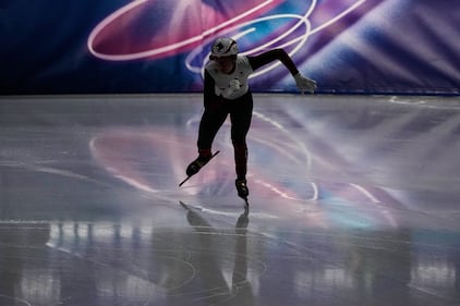Courtney Sarault of Canada prepares for the final during the women's 1000 meter short track speed skating at the 2026 Winter Olympics, in Milan, Italy, Monday, Feb. 16, 2026. (AP Photo/Natacha Pisarenko)