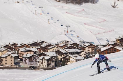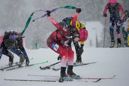 Austria's Paul Verbnjak competes during a ski mountaineering men's sprint heat, at the 2026 Winter Olympics, in Bormio, Italy, Thursday, Feb. 19, 2026. (AP Photo/Rebecca Blackwell)
