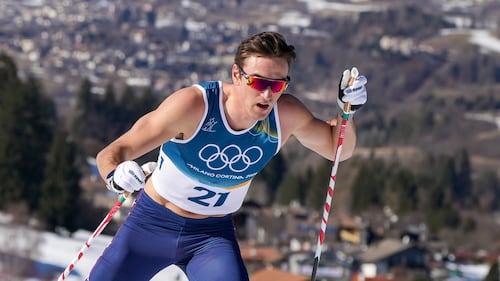 John Steel Hagenbuch, of the United States, competes in the cross country skiing men's 10km interval start free at the 2026 Winter Olympics, in Tesero, Italy, Friday, Feb. 13, 2026. (AP Photo/Kirsty Wigglesworth)