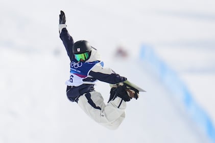 Netherlands' Melissa Peperkamp competes during the women's snowboarding slopestyle qualifications at the 2026 Winter Olympics, in Livigno, Italy, Sunday, Feb. 15, 2026. (AP Photo/Gregory Bull)