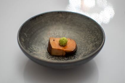 These two dishes, from their $225 blind tasting menu that is constantly changing, feature some of the “best ingredients of the season from around the world,” says operations manager Mary Donison.