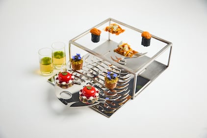 “(This course) features different cuts of bluefin tuna (akami, chutoro, and otoro, all of which have varying fat contents) which guests are invited to enjoy in a specific order to display the change in flavour over various cuts of the same type of protein,” Donison said in an email.