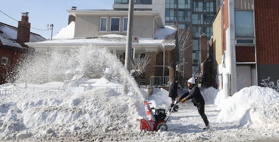 Snow is removed from driveways at Woodbine and Danforth in Toronto, Jan. 26, 2026. (Steve Russell/Toronto Star via Getty Images)