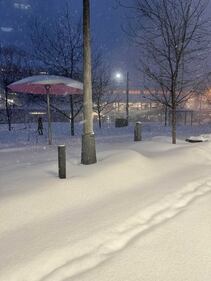 Heavy snow blankets Toronto’s Sugar Beach area on Jan. 25. (Aimen Sarwar/photo)