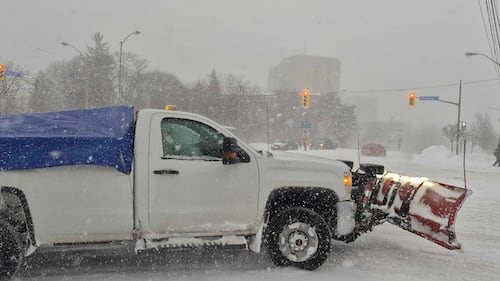 A snow clearing vehicle in Toronto, Monday, Jan. 26, 2026.