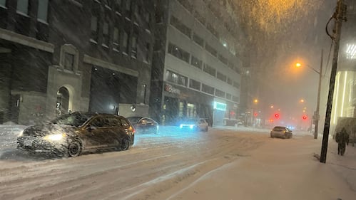 Snowstorm at Bathurst St. and St. Clair Ave., Sunday, Jan. 25, 2026. (Mary Lou Tucci)