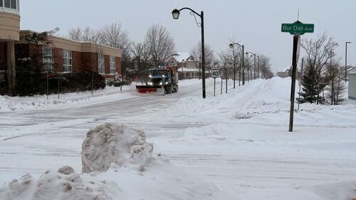 A street is seen filled with snow amid a winter storm in Toronto, Sun., Jan. 25, 2026.