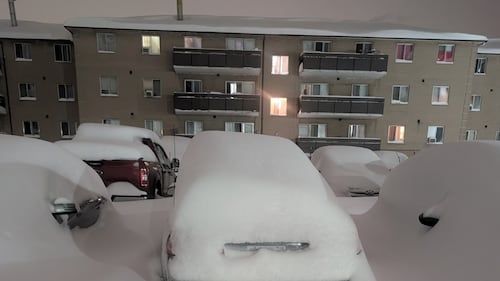 A parking lot in Mississauga, Ont. after a major snowfall, Sunday, Jan. 25, 2026. (Mike Ormonde)