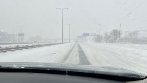 A vehicle appeared to be hit by a snow plow, Monday, Jan. 26, 2026.