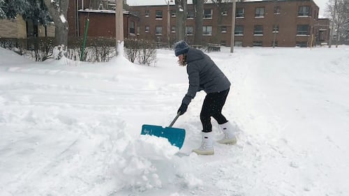 A resident shovels snow in Etobicoke, Sunday, Jan. 25, 2026. (Suzana Vieira)