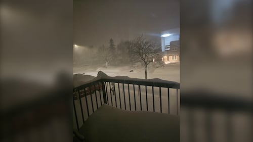 A snow-covered balcony in North York, Monday, Jan. 26, 2026.