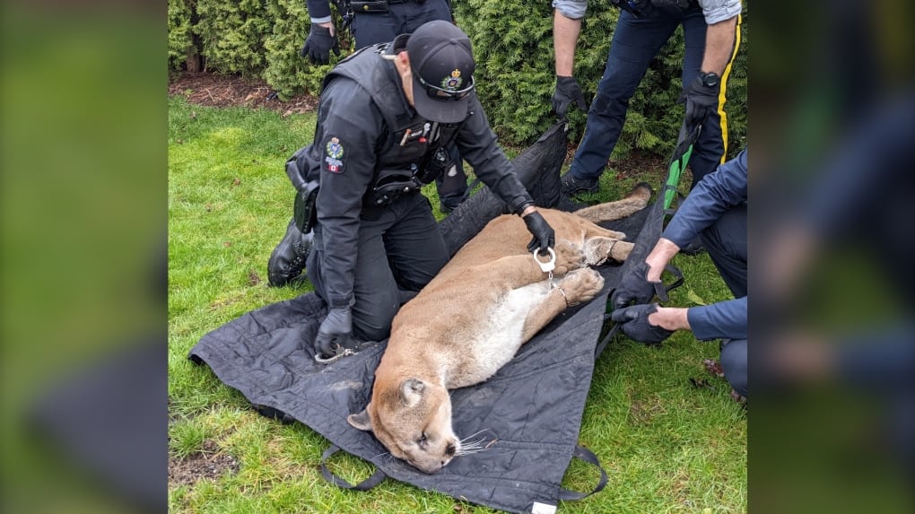 RCMP handcuff cougar that was spotted in Maple Ridge, B.C., neighbourhood
